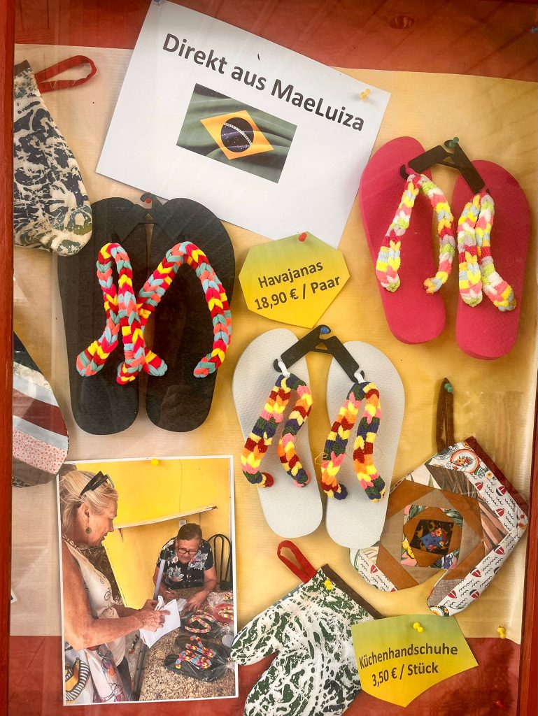 Endlich ist Ware aus MaeLuiza eingetroffen, die dort in Handarbeit hergestellt wird. Wunderschöne Havaianas (FlipFlops), die mit ihrer Buntheit die brasilianische Lebensfreude widerspiegeln.